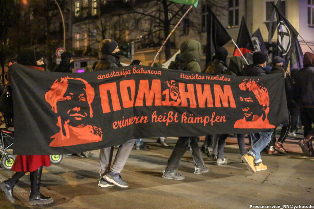 Мы смотрим на это мероприятие шире. Для нас это не только память, это борьба. Лозунг — «помнить значит бороться». Необходимо поддерживать тех, кто остаётся в России: политзаключенных, людей, которых прессуют, которые продолжают сопротивляться. Нам важно оставаться с ними связанными, оказывать поддержку. Важно доносить действительную картину, потому что есть так называемые путинферштееры, которые пытаются найти что-то хорошее, противопоставить НАТО России. Мы считаем, что люди просто не знают, что происходит в России, и важно говорить, что с левой точки зрения российский режим не может быть союзником или меньшим злом. Мы видим, что активистов убивают, пытают, сажают на большие сроки. Уфимских марксистов посадили на больше 20 лет — это беспрецедентно. Поэтому важно проявлять солидарность, не забывать, откуда мы родом, и оставаться людьми своих взглядов. Задача — не только почтить память, а сделать так, чтобы таких случаев больше не было. Это долгая работа.
